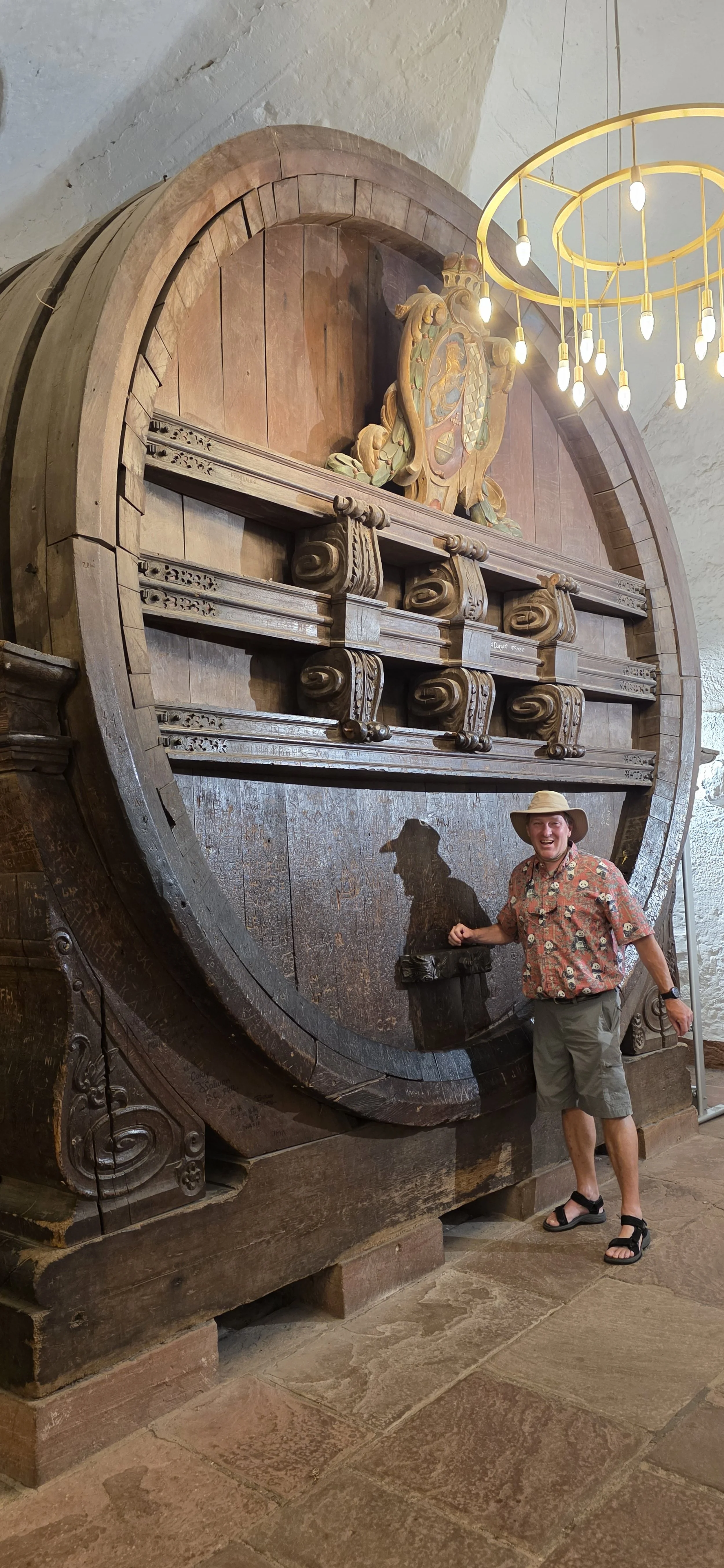 In the 18th century, wine makers would bring a portion of their yield to the elector (who was the leader in the region) in Heidelberg as taxes. The wine was poured through a hole into the floor, into the Heidelberg Tun (made in 1751). The Heidelberg Tun is the worlds largest wine barrel, it holds roughly 220,000 liters. The elector and friends would drink this wine all year long. It had to be very bad, but better than the water.