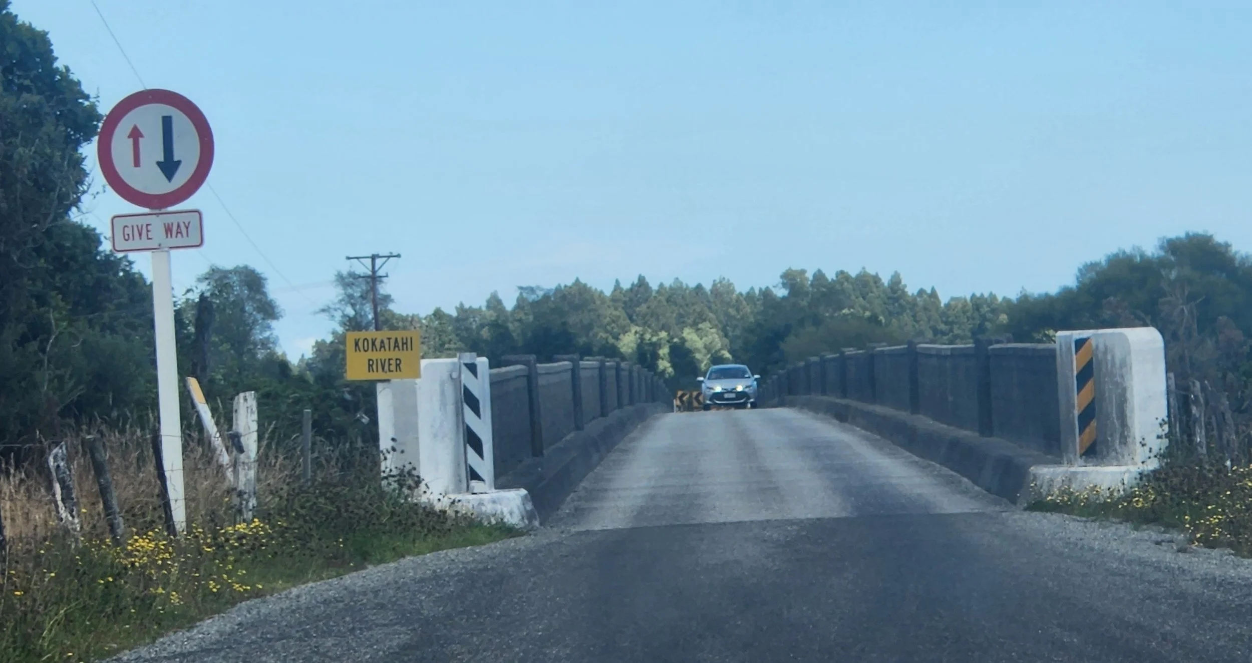 One way bridge, a fixture on route 6. If you have the small red arrow you don’t have the right of way.