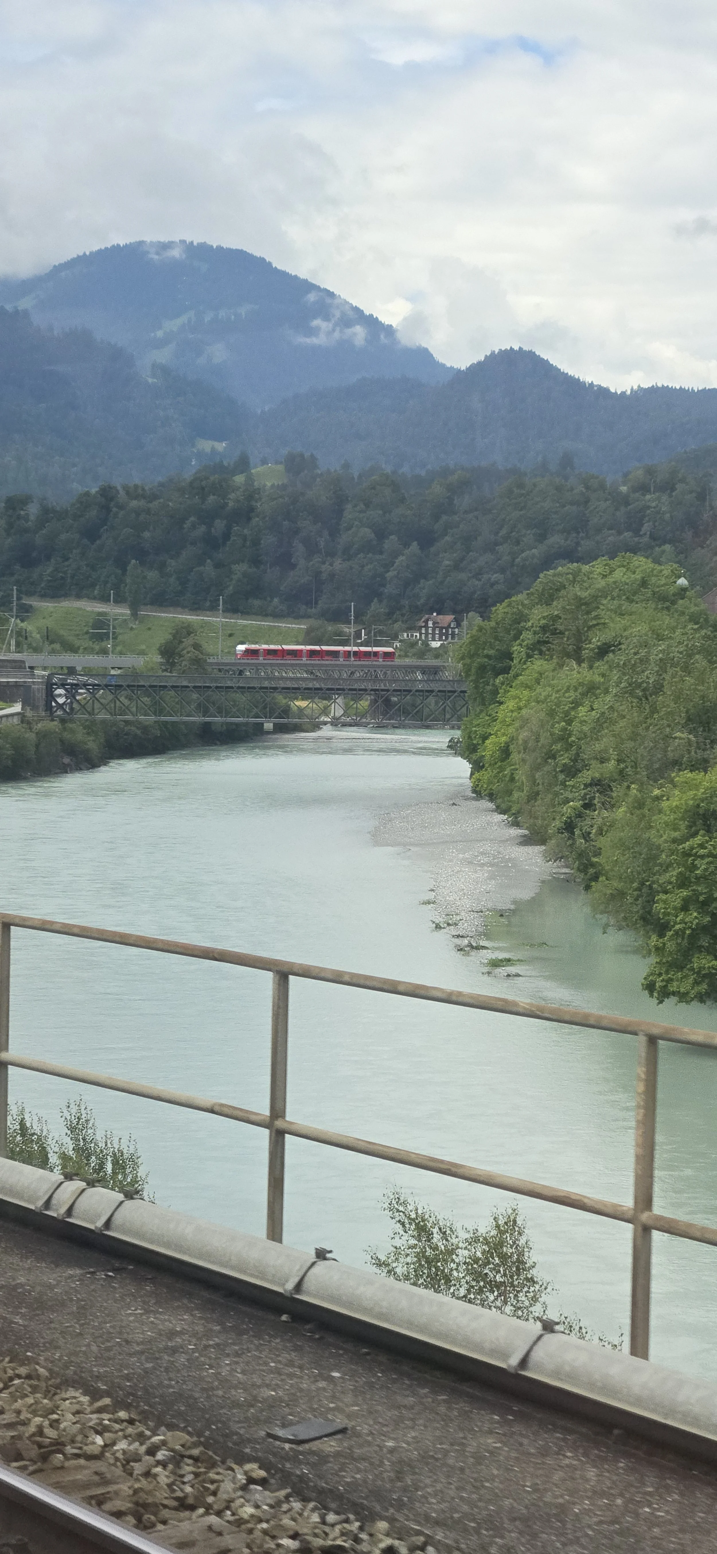 Above: Confluence of Vorderrhein and Hinterrhein to form the Rhine River in Tamins Switzerland, on the way to Chur.