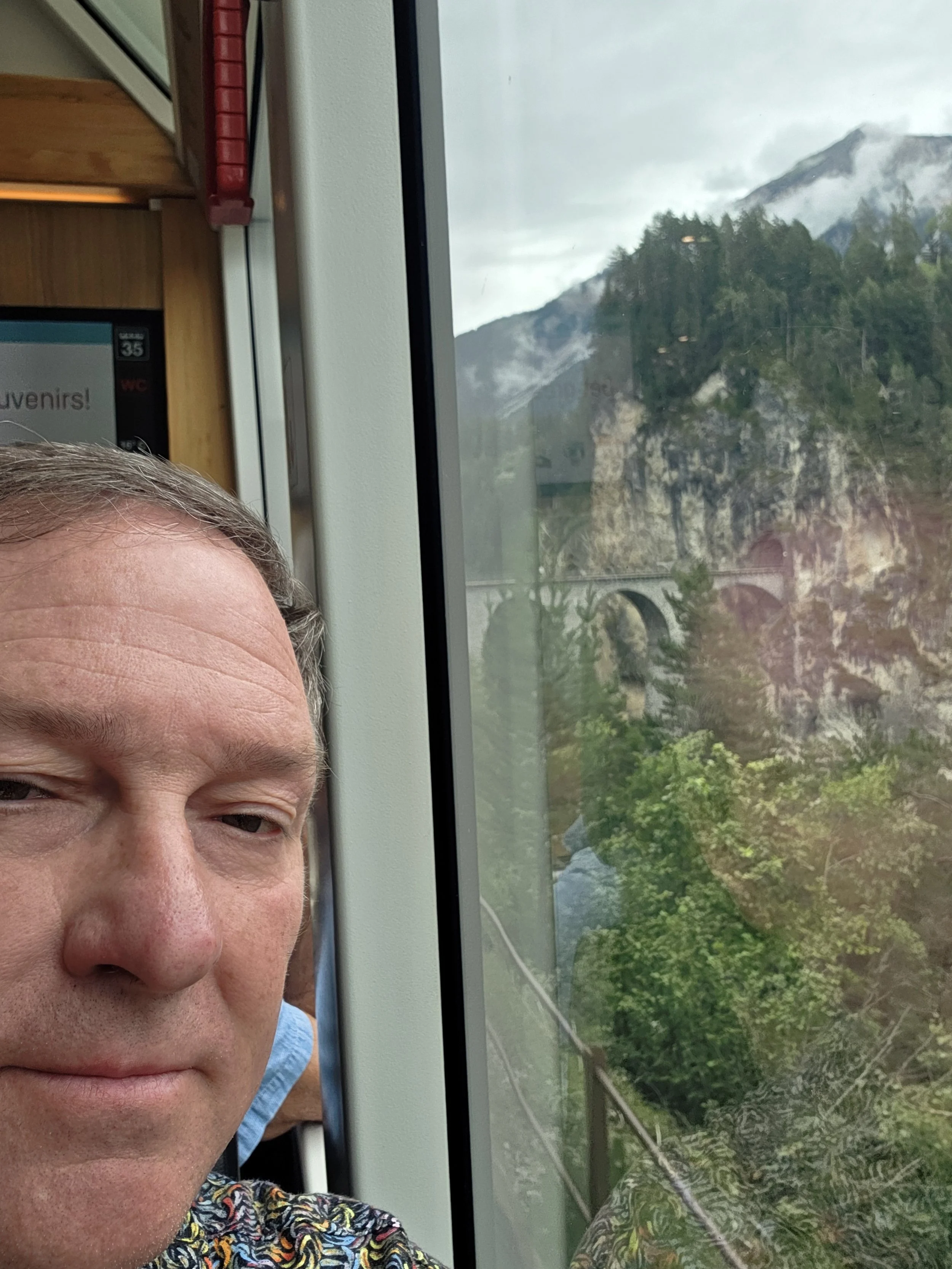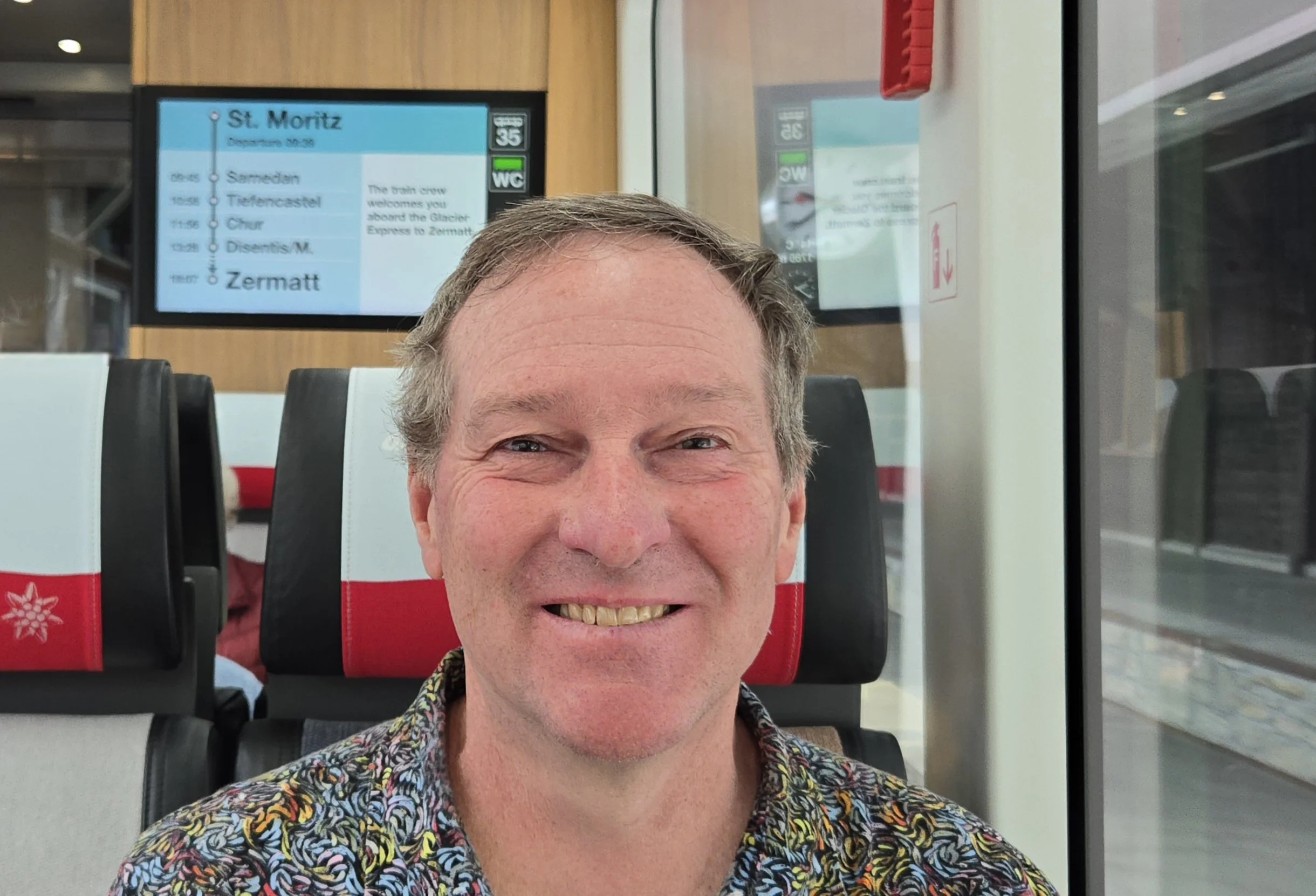 Anthony onboard the Glacier Express in San Moritz