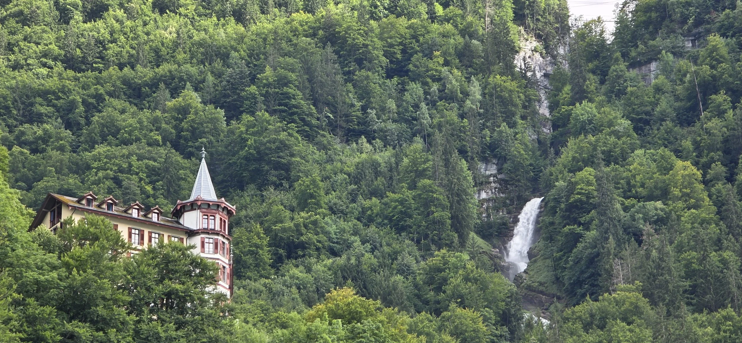 The hotel Grandhotel Giessbach and the Giessbach Falls