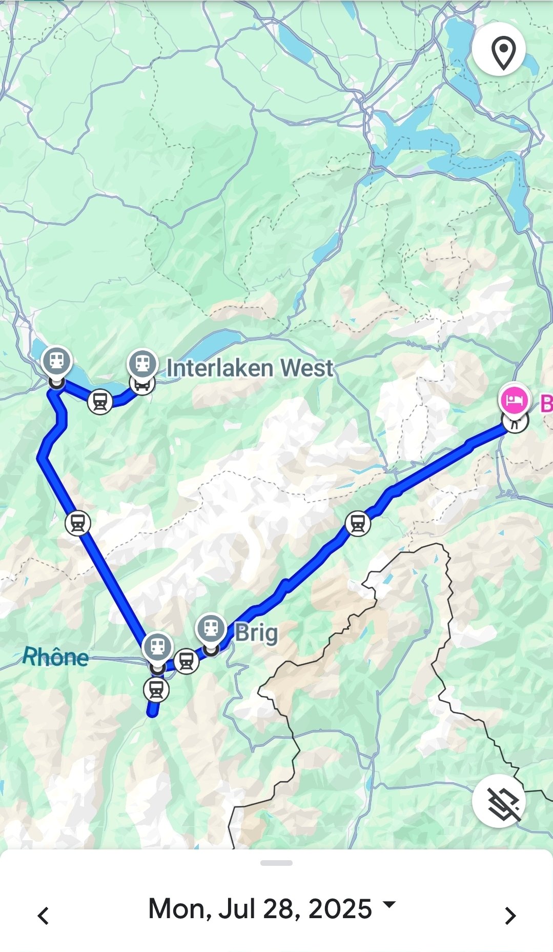 Maps: 1) Lucerne to Interlaken via train 2) Ferry Trip on Lake Brienzersee 3) Lauterbrunnen and Trummelbach Falls 4) St Beatus-Hohlen Caves and Grindelwald 5) Interlaken to Andermatt via Train
