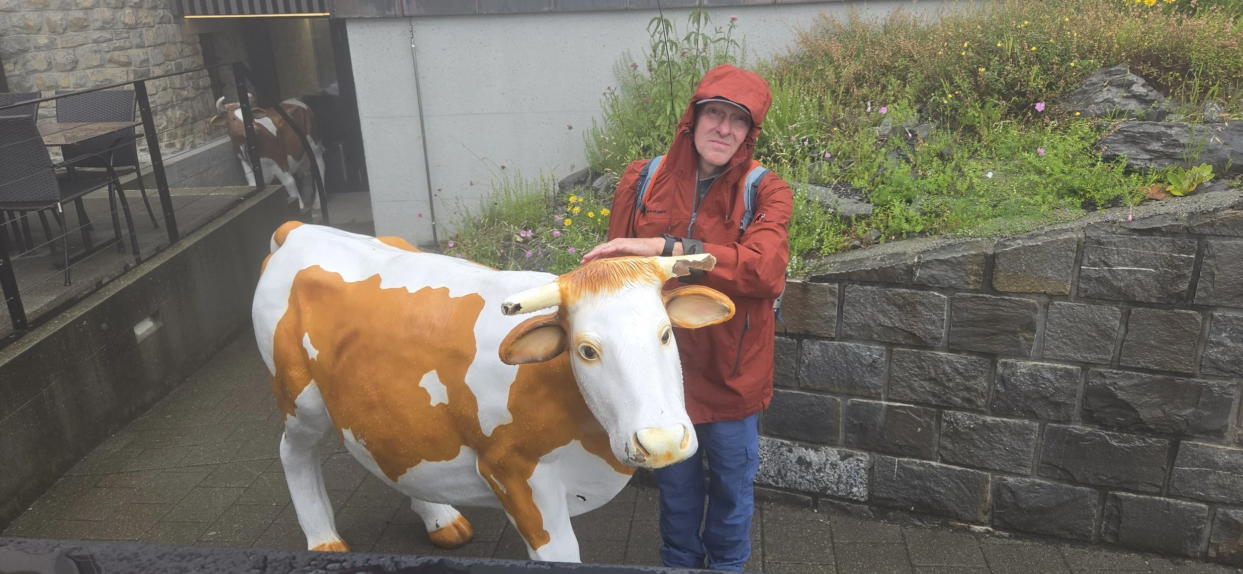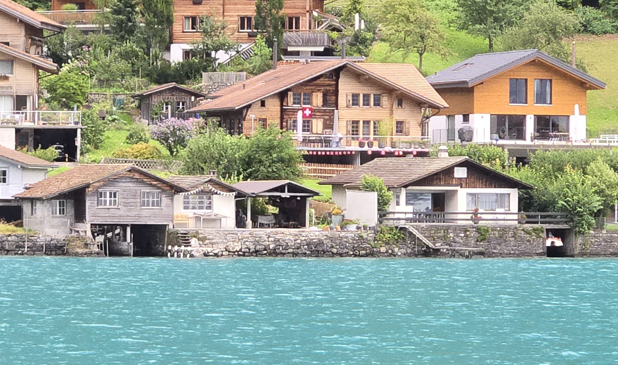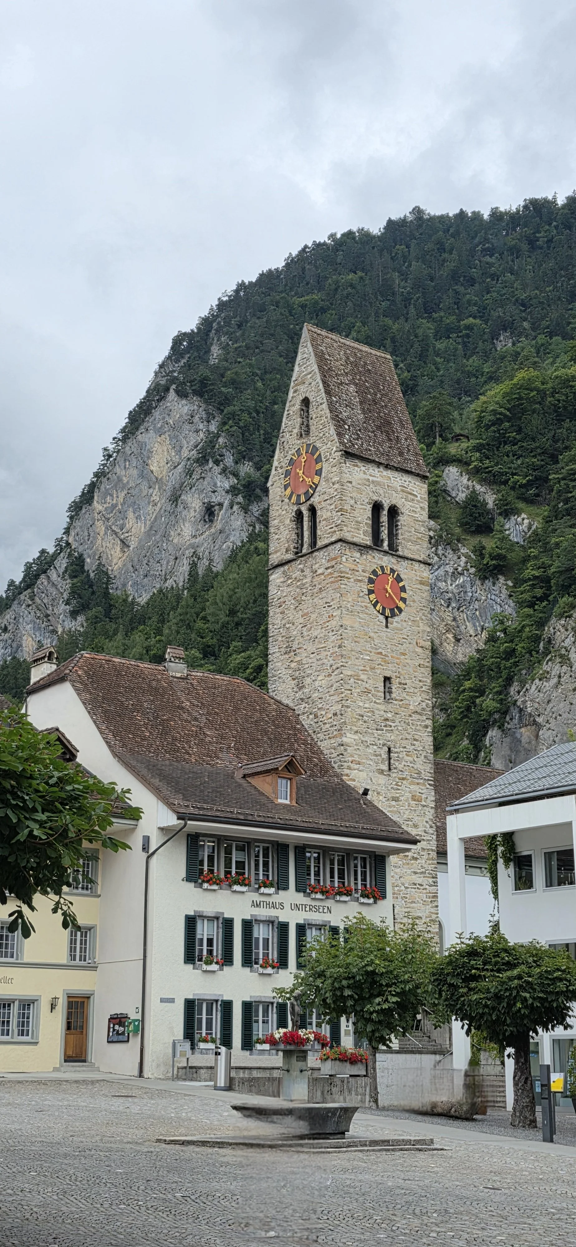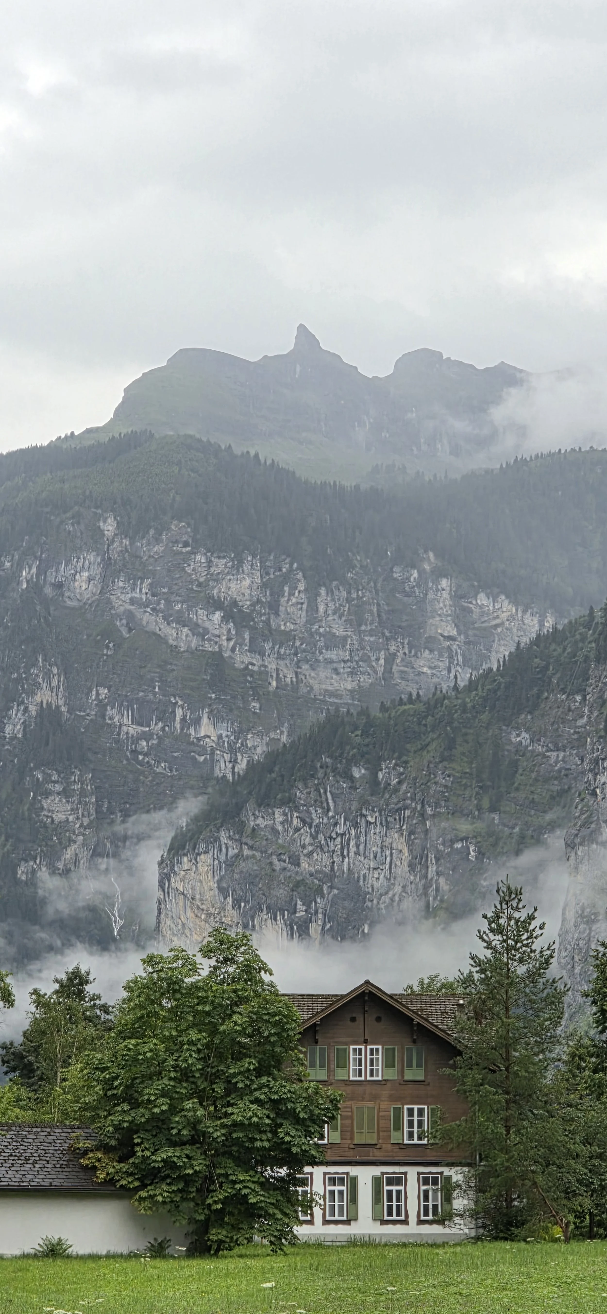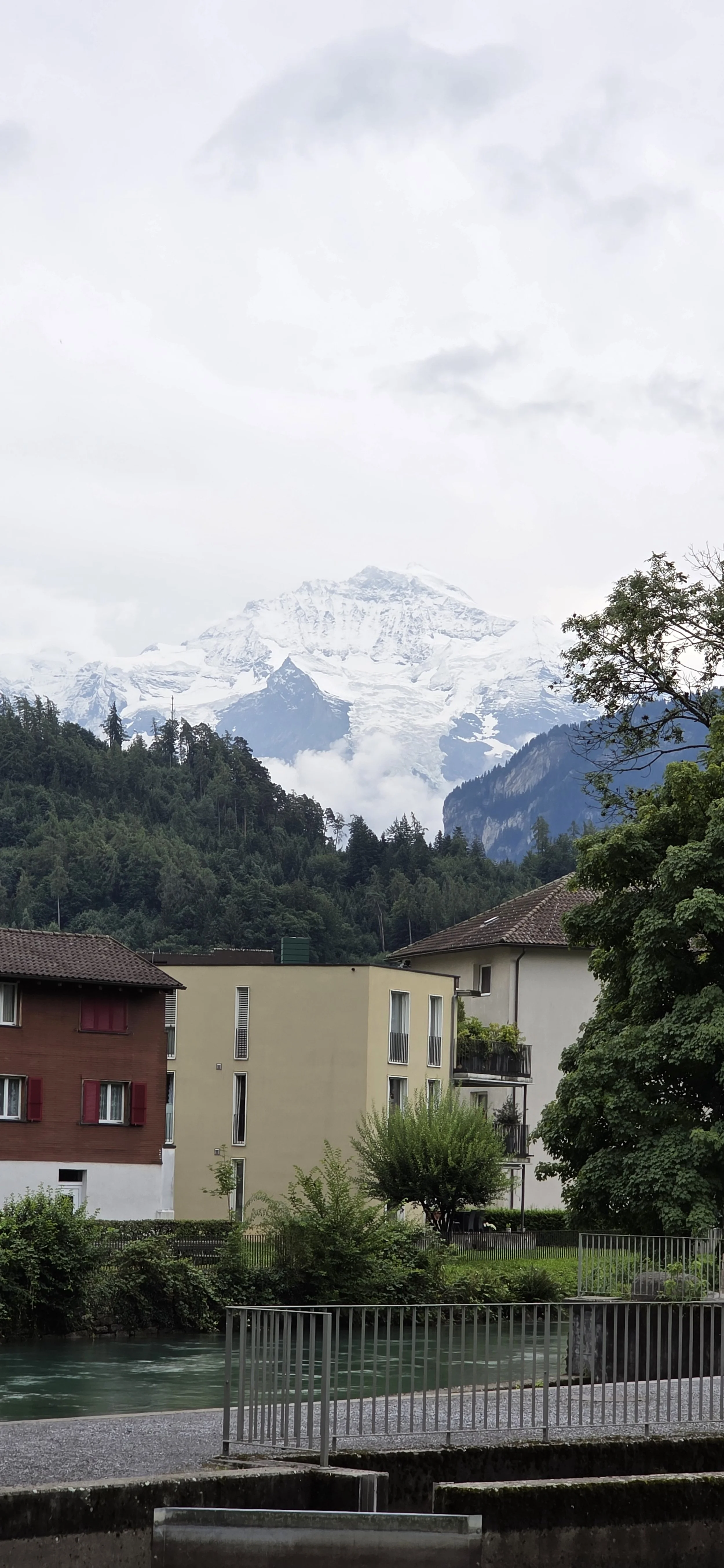 Julie and Anthony had lunch in Interlaken, near the Interlaken Ost train station. Anthony got claustrophobic because the area around the train station was crawling with tourists. Fortunately, the AirBnB was about a mile to the west, in the village of Unterseen, away from the fray.